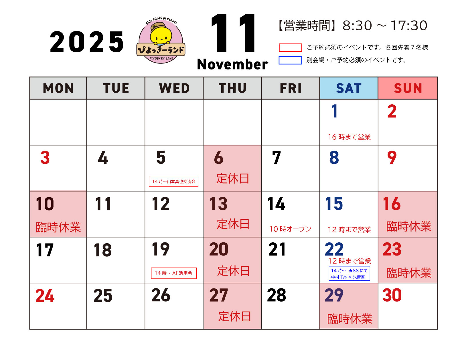 ※臨時休業等はカレンダーをご確認お願いします※